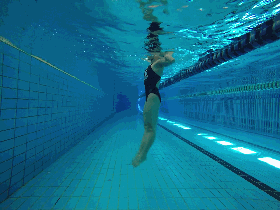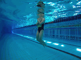 描述:抬头俯卧于水中,拇指相扣,双臂前伸呈流线型,高频率打腿,向下打腿用力,上抬放松。