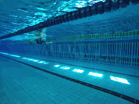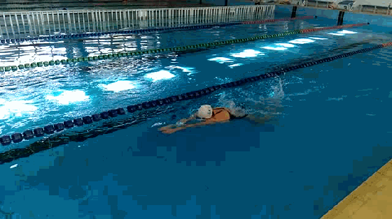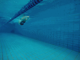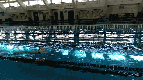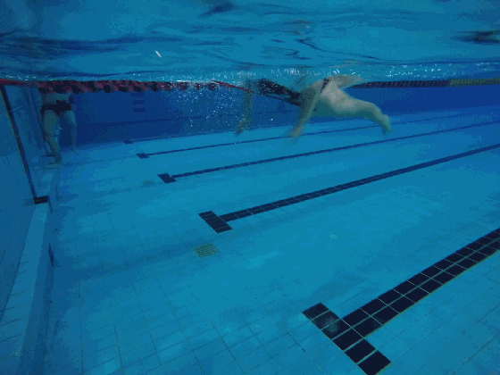 技巧:目视池底,注意手腿配合节奏,按照双手入水打水一次,双手推水打水一次的节奏完成。