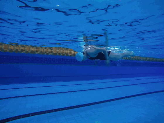 描述:身体俯卧于水中,略低于水平面,双腿快速有力打腿,双臂伸直,保持身体水平。