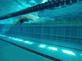 练习目的:体会蝶泳手部上划的推进效果。