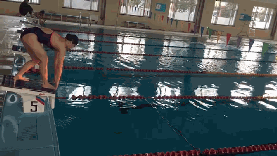 练习目的:体会出发过程腿部蹬伸发力、腾空及入水感觉